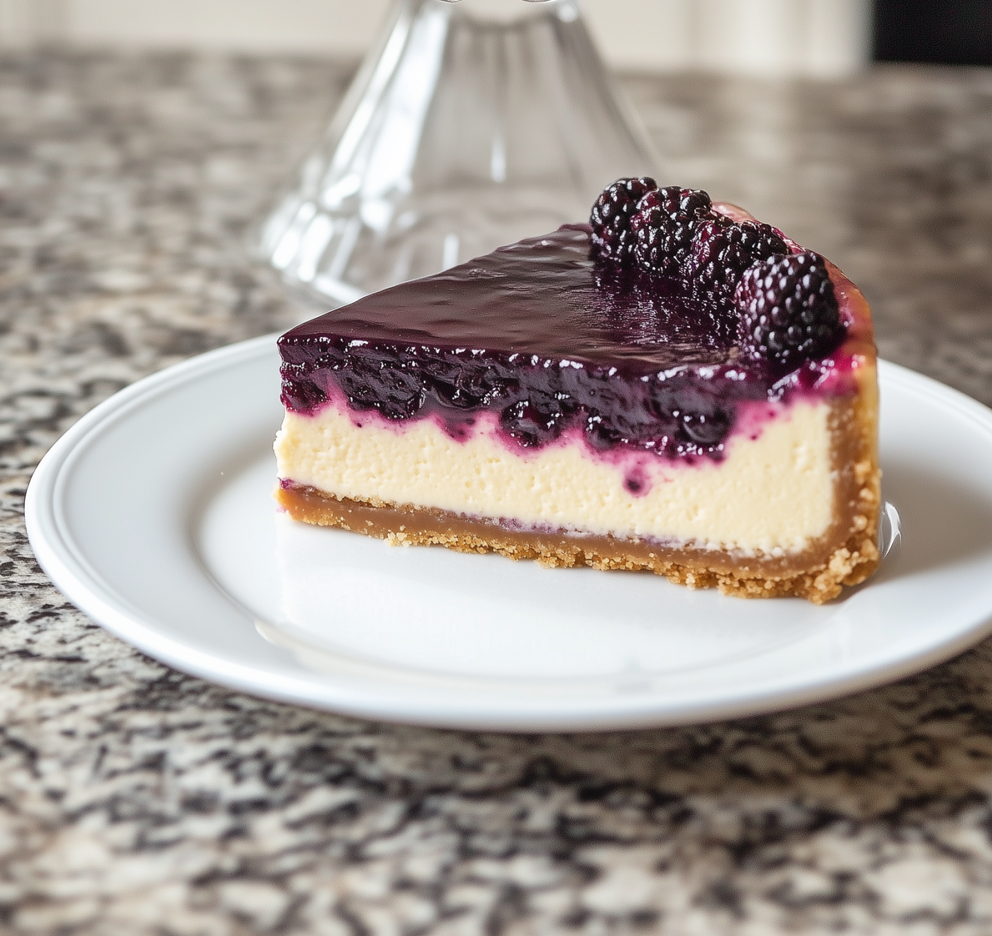 - Final Assembly: After the cheesecake has cooled and chilled for at least 4 hours, spread the blackberry topping over the top. Refrigerate for another hour before serving.